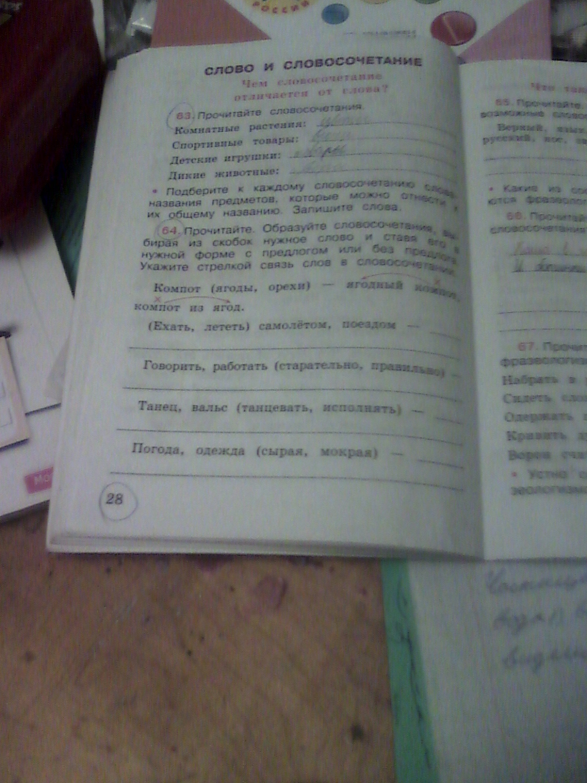 Прочитайте образуйте словосочетания выбирая из скобок нужные слова и 2 его в нужной форме с предлогом или без предлога Укажите стрелками связь слов в словосочетании