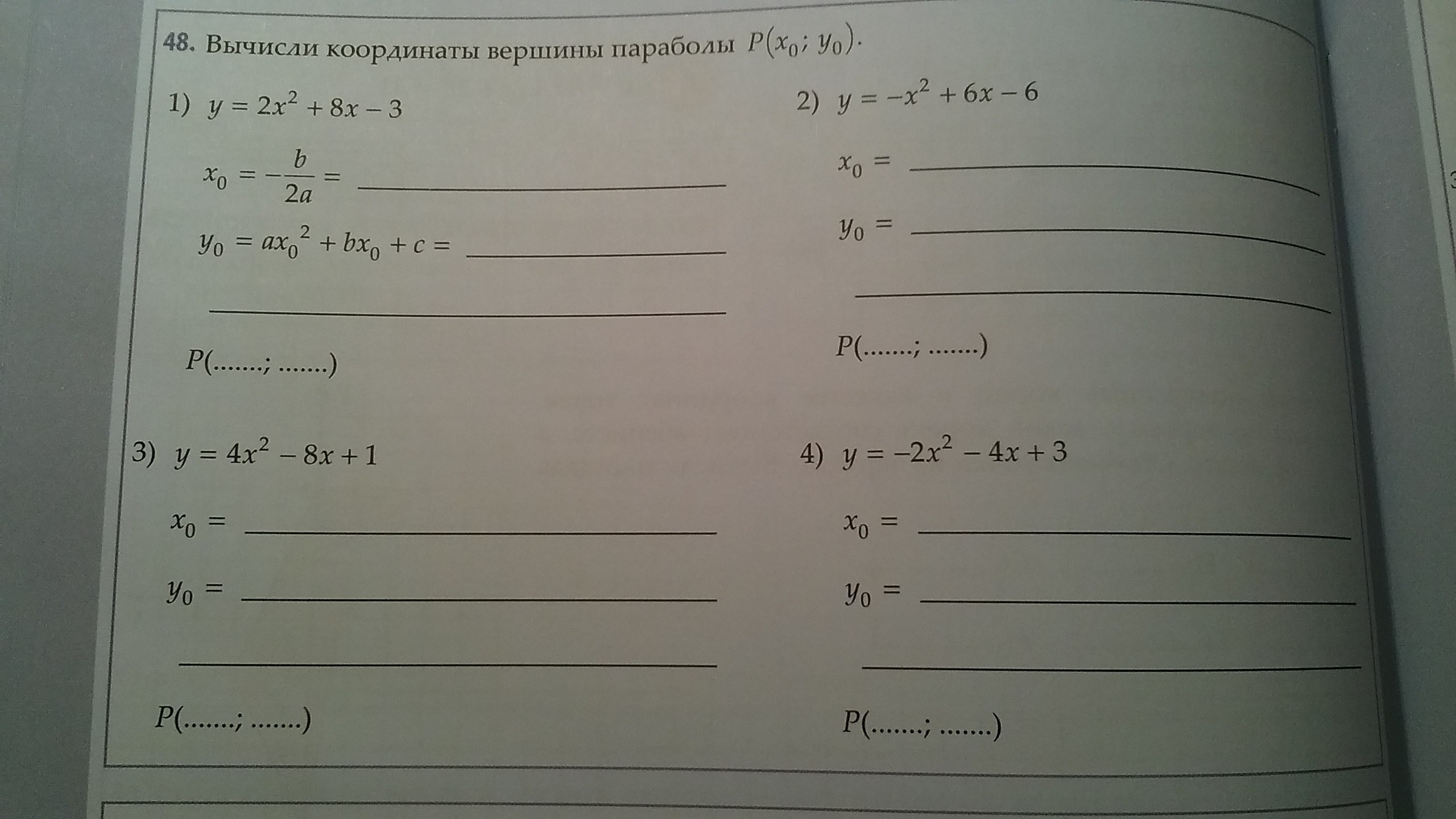 В первом примере формулы даны , 1) -2;-11 2) 3;3 3) 1;-3 4) -1;5
