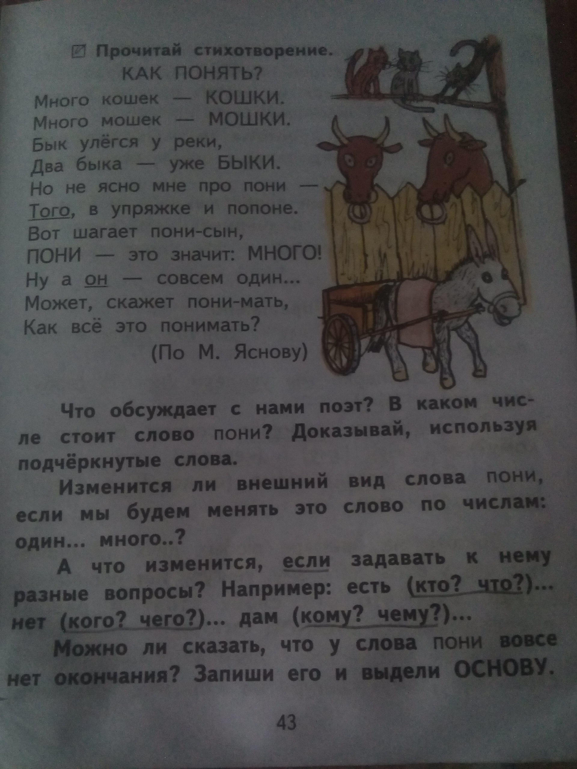 Пони( корень пони, окончания нет, основа слова пони).