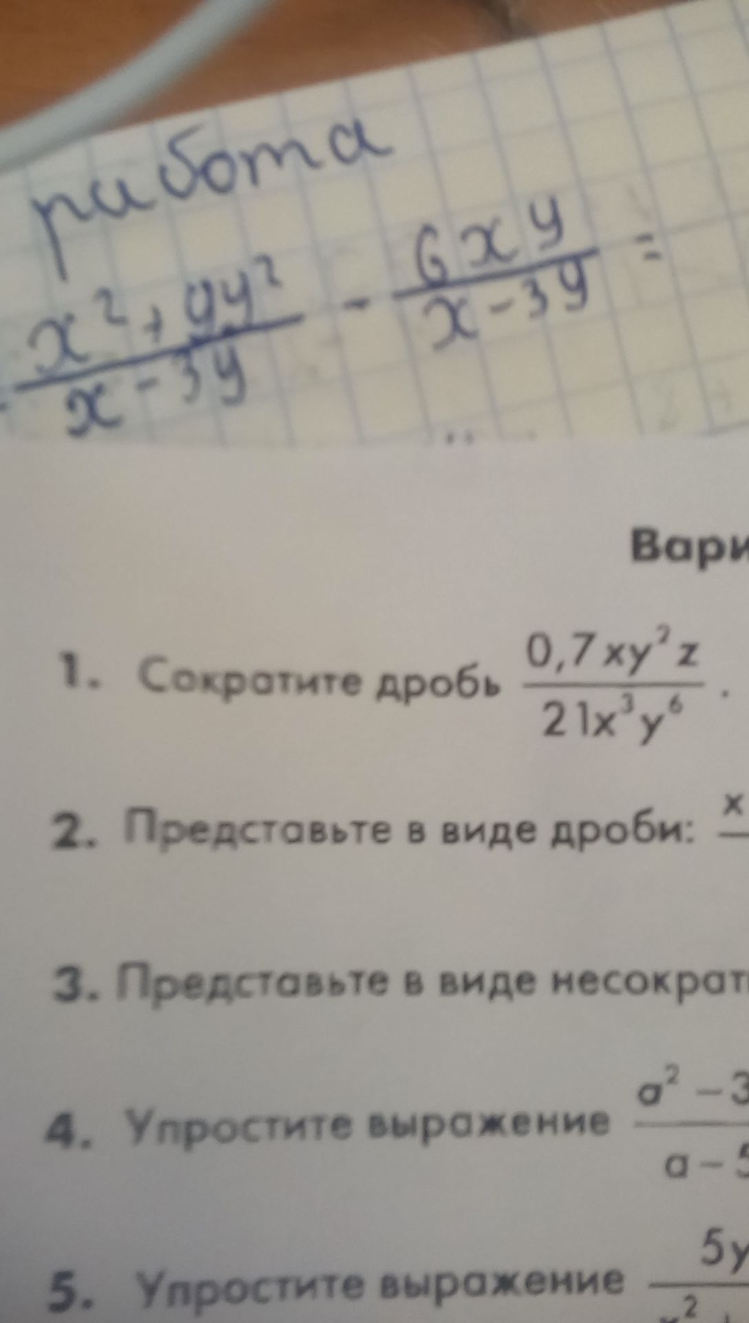 0,7xy^2z/21x^3y^6 = z/30x^2 y^4