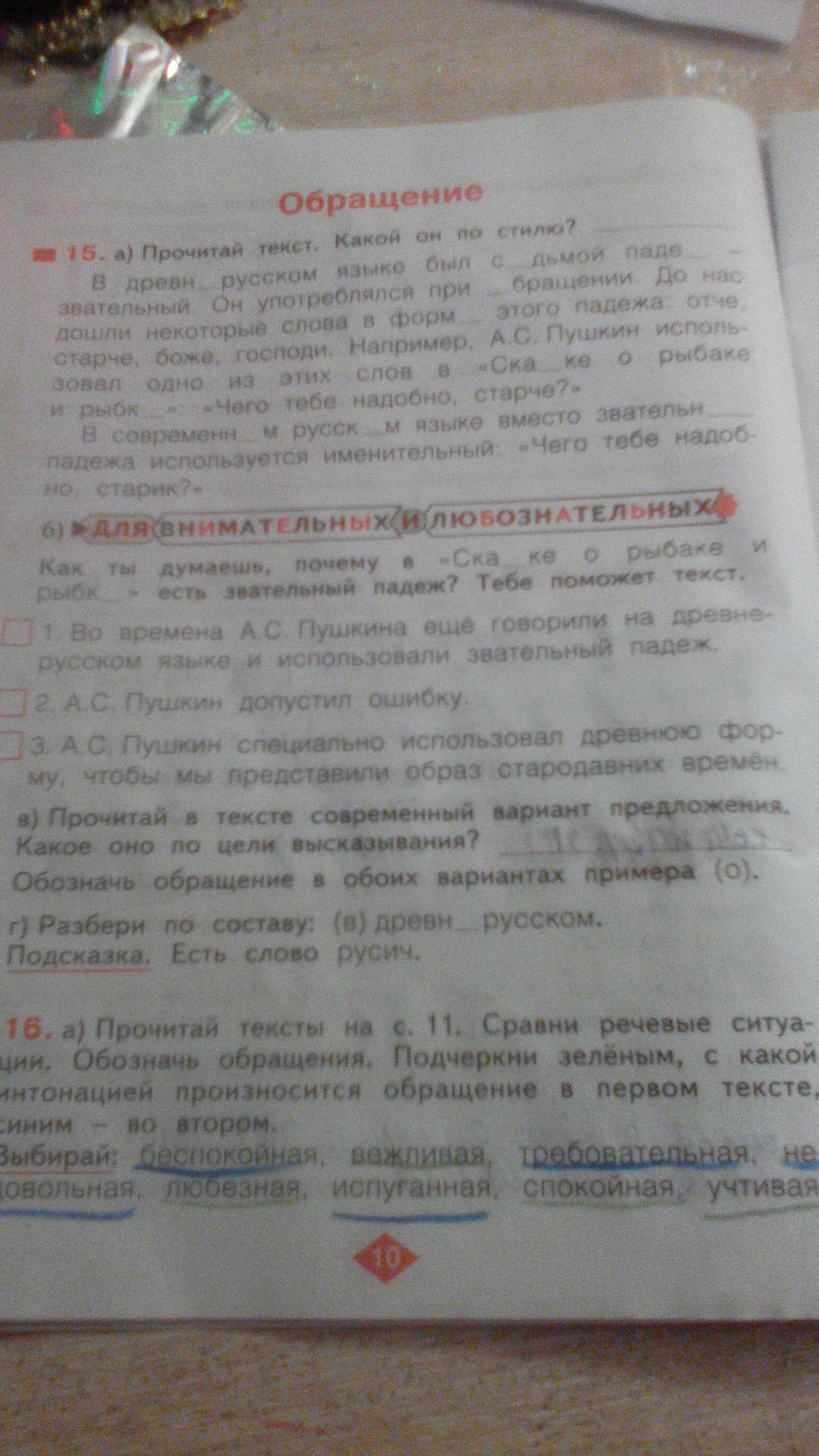 Вставленные буквы в словах: древнЕрусском, сЕдьмой, падеЖ, Обращении, формЕ, скаЗке, рыбкЕ, современнОм, русскОм, звательнОГО.