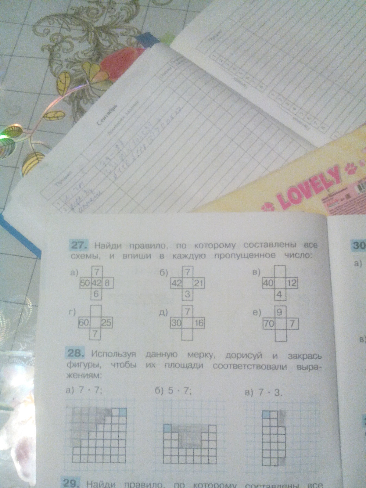 В). Наверху 7, в середине 28.