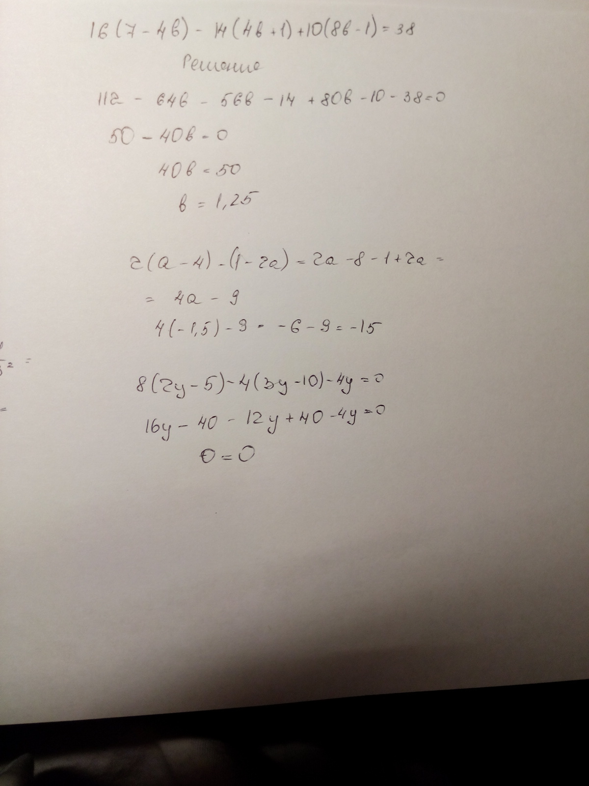 Докажите что значение выражения равно нулю при любом y: