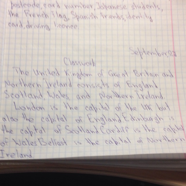 Ландан ис зэ кэпитал оф зэ ЮКей (Юнайтед Киндом) бат олсоу зэ кэпитал оф Ингланд. Эдинбё ис зэ кэпитал оф Скотлэнд. Кадиф ис зэ кэпитал оф Уэльс. Бэлфаст ис зэ кэпитал оф Назен Аэленд.