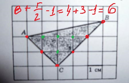 Найдите площадь треугольника АВС. Размер каждой клетки 1 см х 1 см. Ответ дайте в квадратных сантиметрах