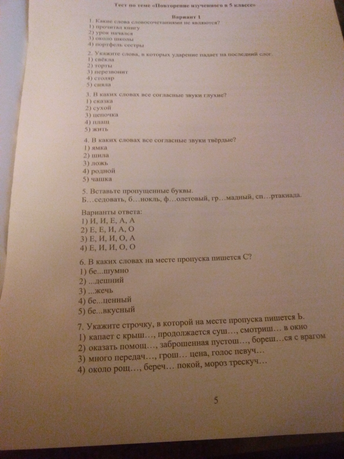 5)бесЕдовать,бИнокль,фИолетовый,грОмадный,спОртокиада.