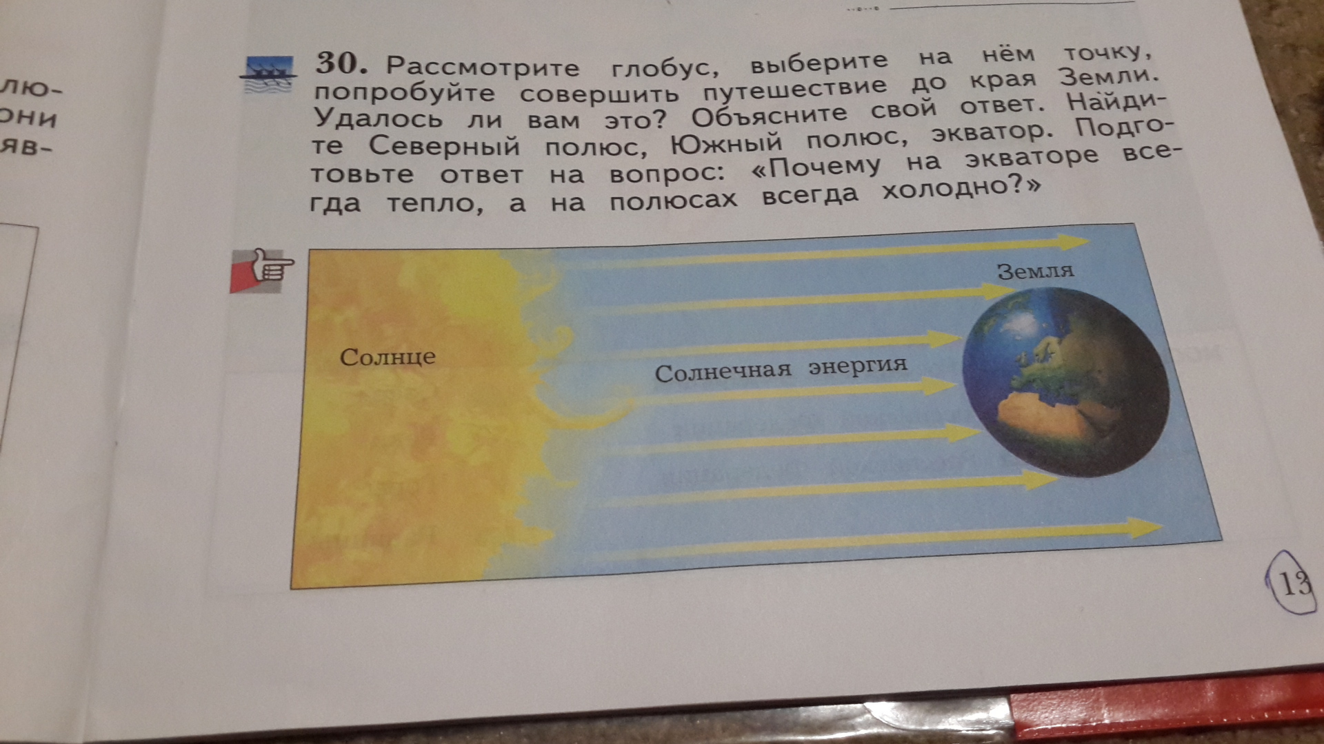 Чем более отвесно падают на Землю солнечные лучи, тем сильнее они ее разогревают. Косые лучи должны обогревать большую территорию, что и приводит к большим потерям тепла. Следовательно, на экваторе воздух теплее, чем. на полюсе.