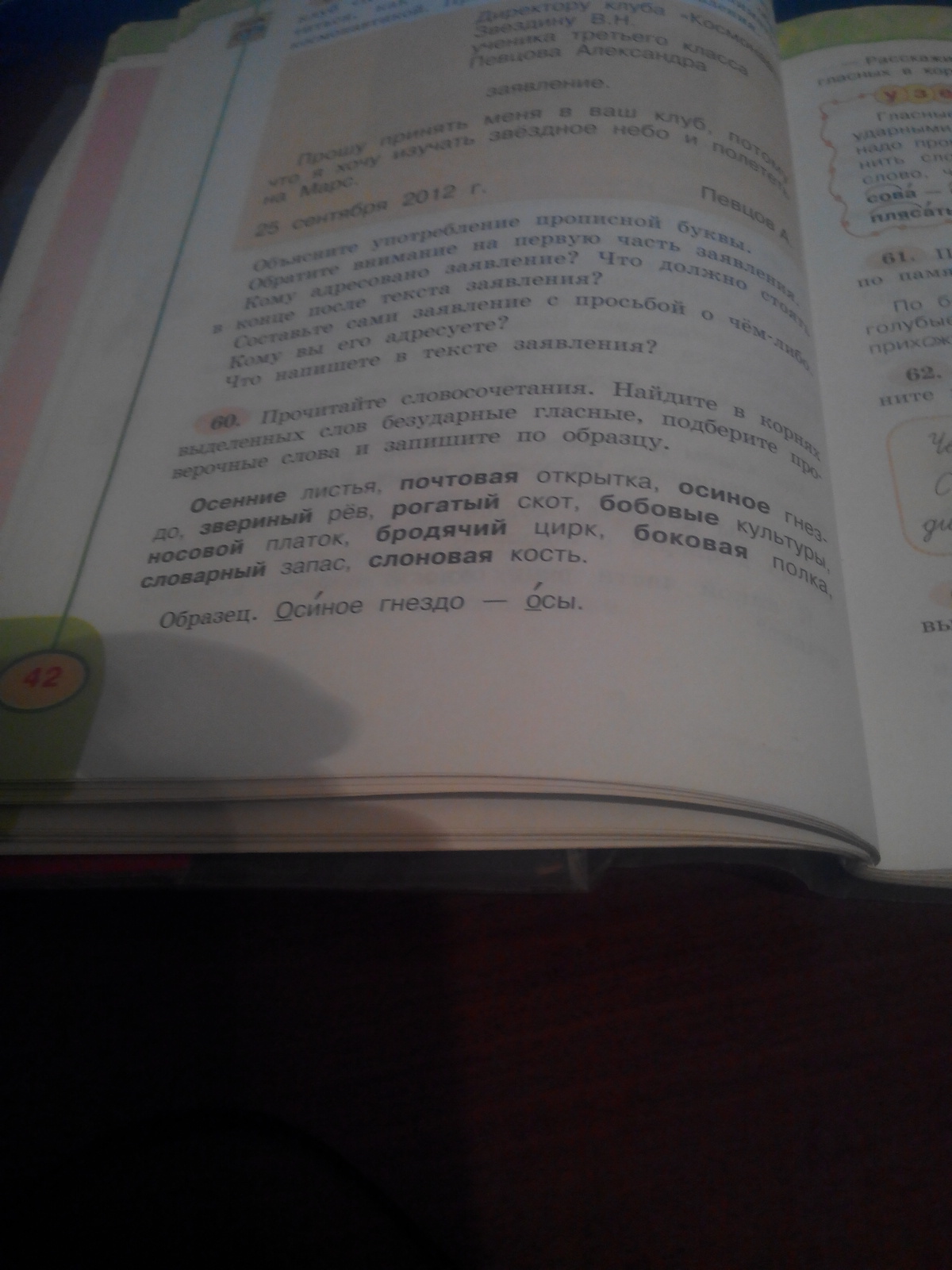 осЕнние листья - Осень; почтОвая открытка - пОчта; зверИный рев - звЕрь; рогАтый скот - рОг; бобОвые культуры - бОб; носовОй платок - нОс; бродЯчий цирк - брОдит; боковАя полка - бОк; словАрный запас - слОво; слонОвая кость - слОн.
