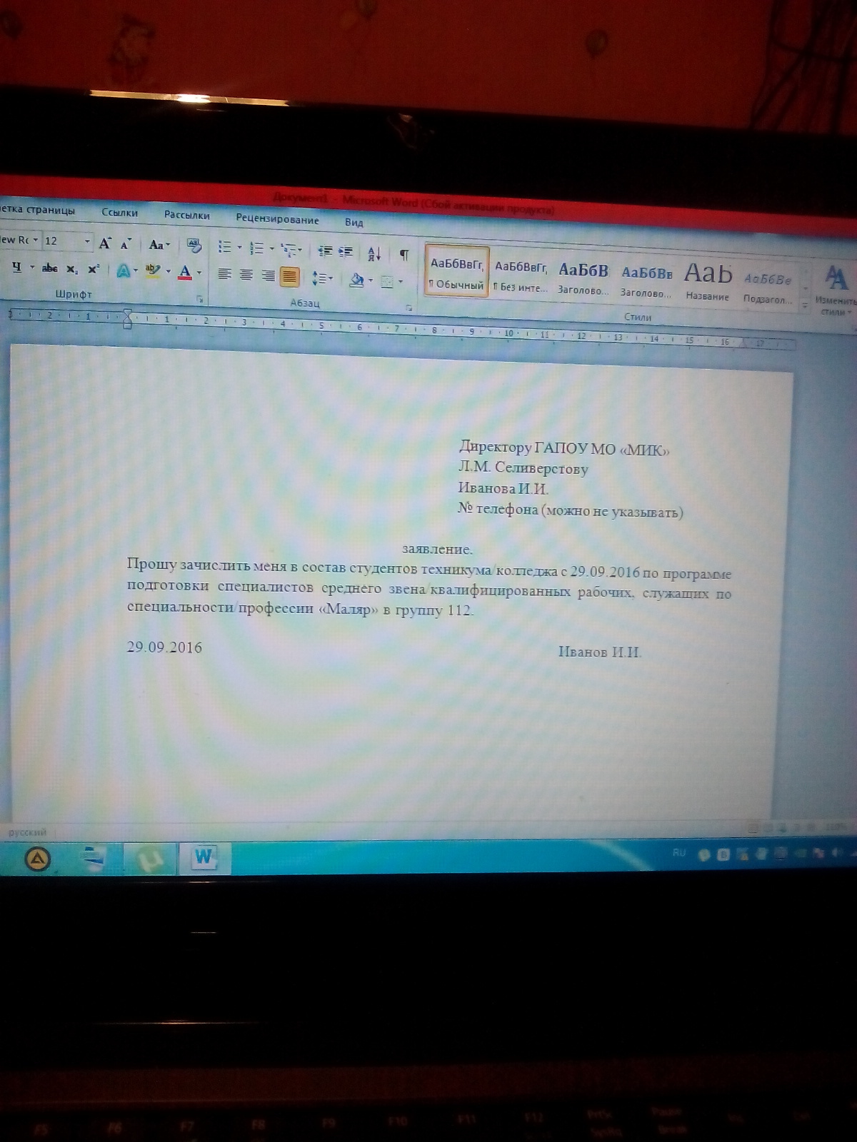 ФИО поступающего ( предлог ОТ не пишется, Фамилия полностью, имя и отчество сокращено)
