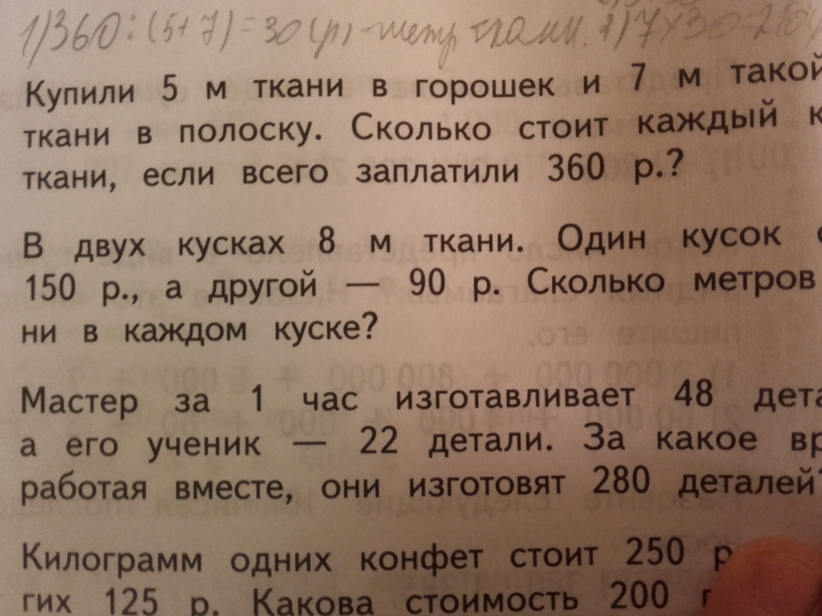 Сначала узнаем сколько стоит 8 м - 150+90=240 рублей, значит 8 м - 240