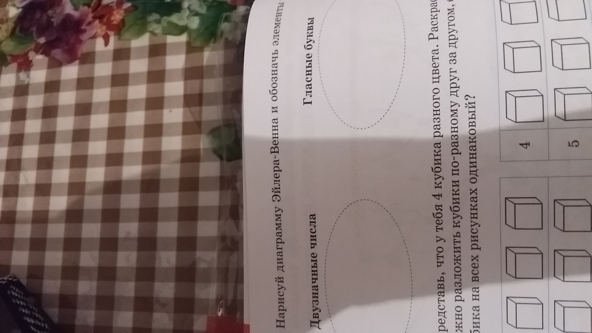 нарисуй диаграмму Эйлера-Венна и обозначь элементы множеств.Помогите пожалуйста