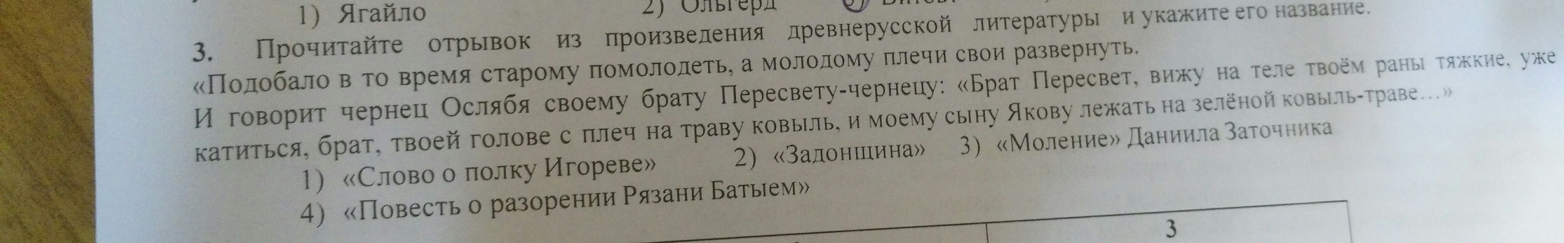 В 3 задании ответ номер 2. "Задонщина"