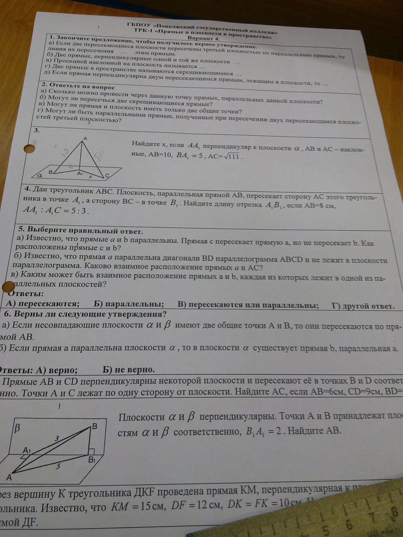 а) - Другой ответ. Прямая С лежит в другой плоскости.