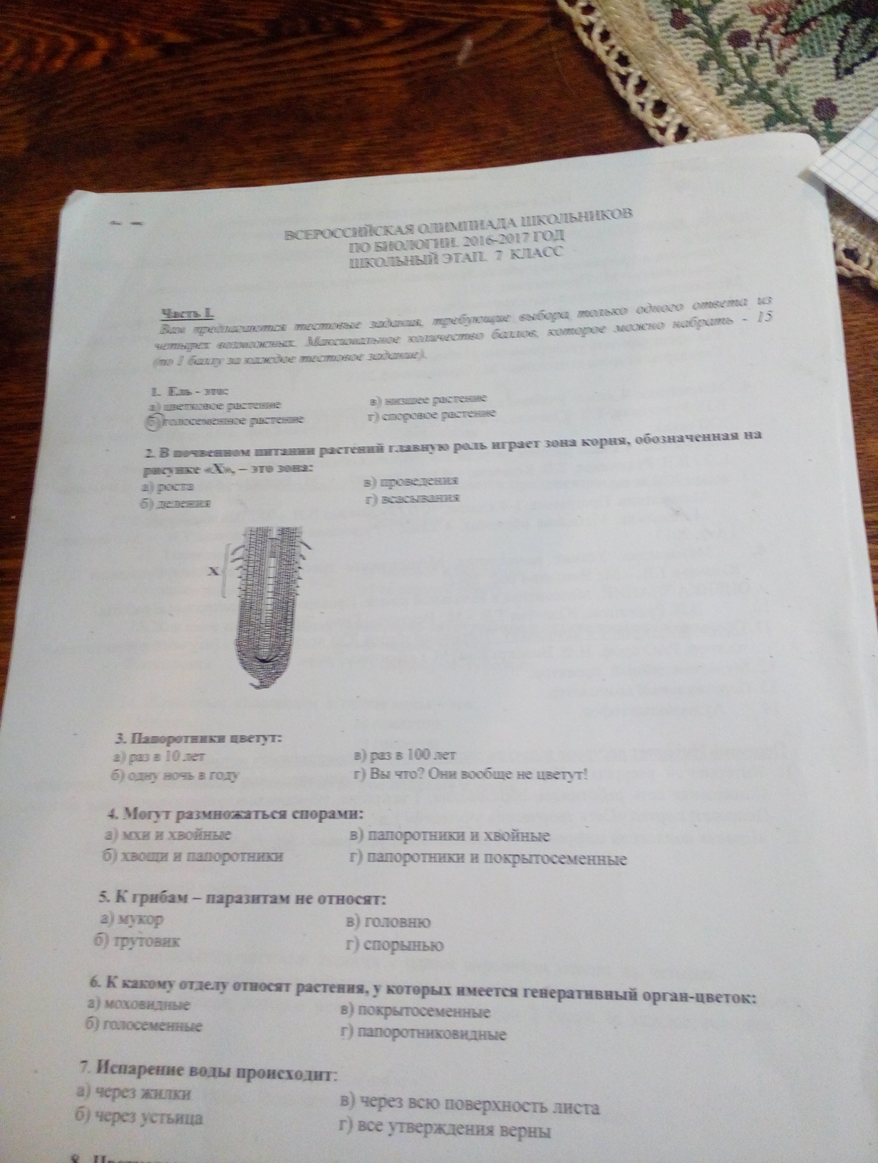 в почвенном питании растений главную роль играет зона корня,обозначенная на рисунке ,,х" -это зона...а.роста б.деления в.проведения г.всасывания