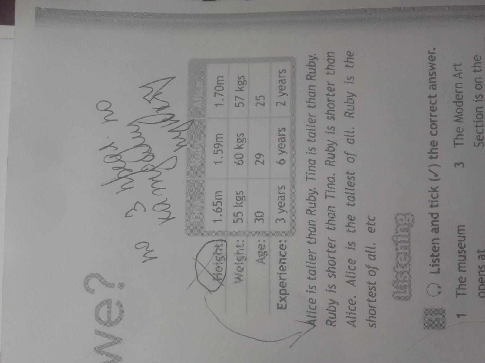 Tina weighs less than Ruby. Tina weighs less than Alice. Ruby weighs more than Alice. (Ruby is heavier than Alice.) Ruby is the heaviest. Tina weighs the least.