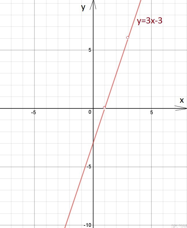 График данной функции совпадает с графиком у=3х-3 на области определения данной функции. На (-∞;0)U(0;3)U(3;+∞)
