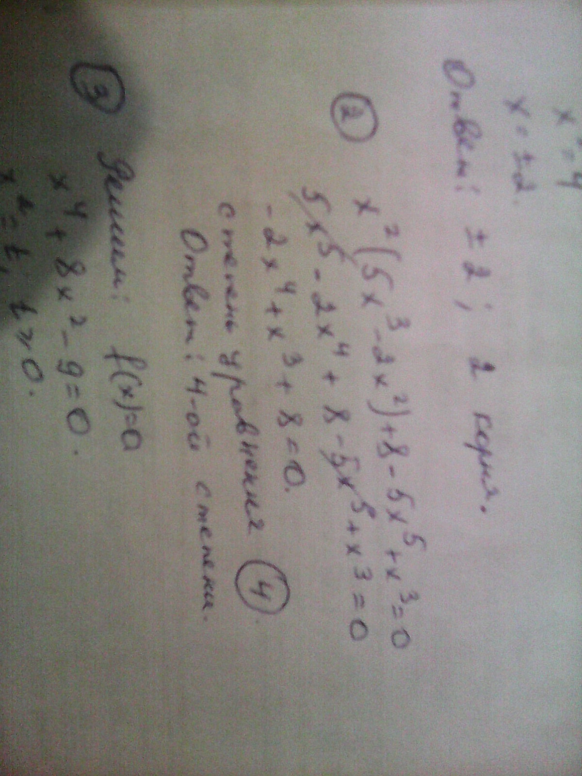 х2(5х3 - 2х2) + 8 - 5х5 + х3 = 0?
