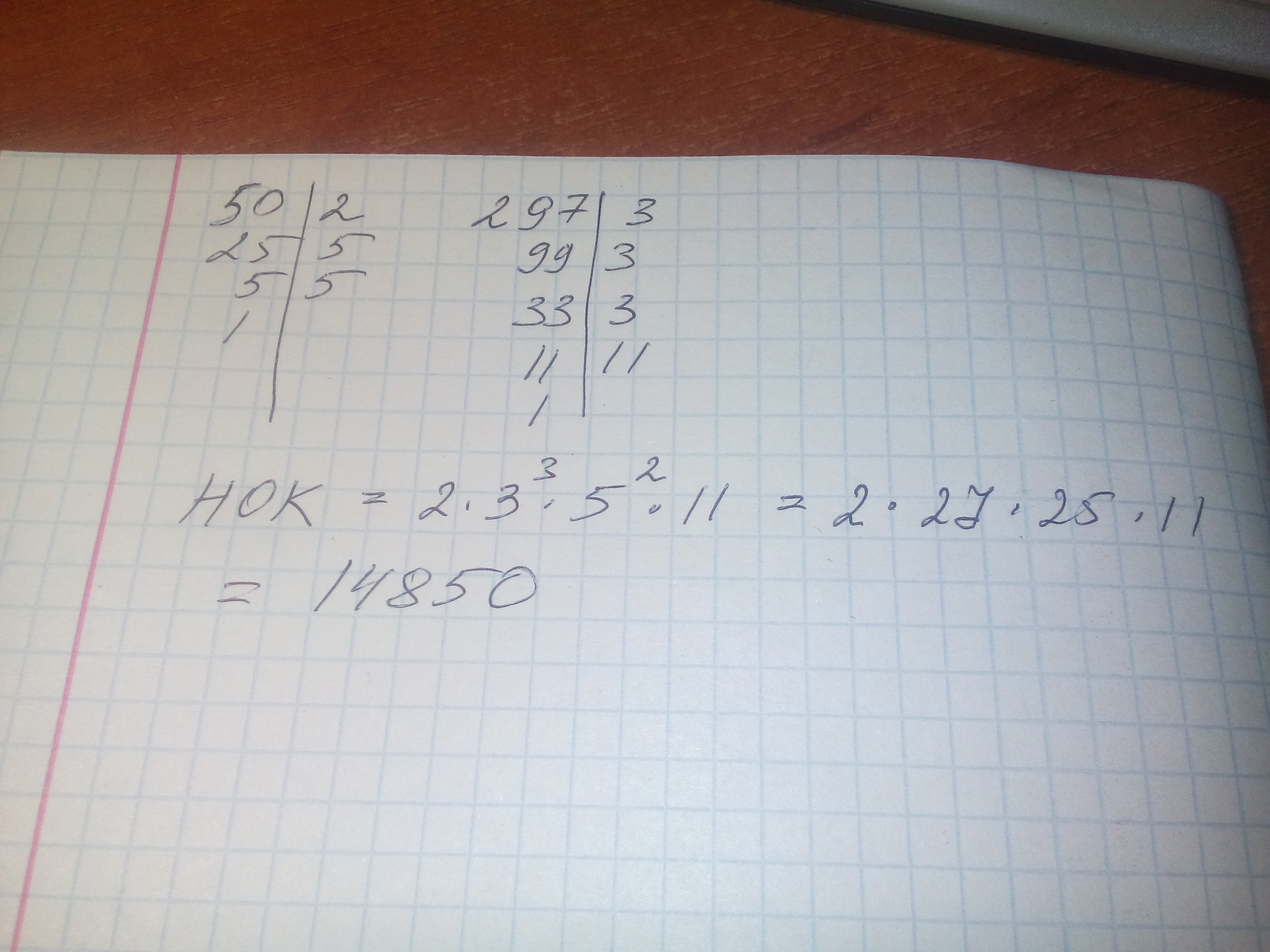 б)50, 297, 297=3*3*3*11 50=2*5*5.,НОК (50; 297) = 2*5*5*3*3*3*11=14850
