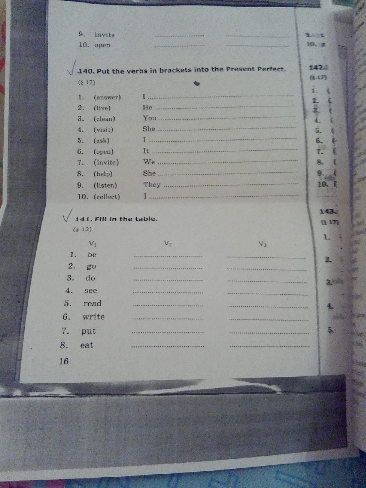 be-was/were-been. go-went-gone. do-did-done. see-saw-seen read-read-read. write-wrote-written put-put-put. eat-ate-eatten