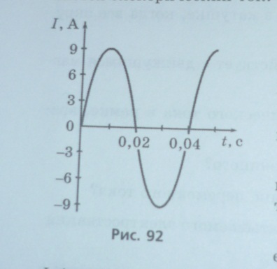 По графику, изображенному на рисунке 92, определите период и частоту переменного тока. Если можно с объяснением.
