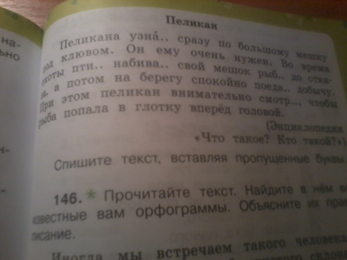 Пеликана узнаешь сразу по большому мешку под клювом.Он ему очень нужен.Во время охоты птица набивает свой мешок рыбой до отказа,а потом на берегу поедает добычу.При этом пеликан внимательно смотрит ,чтобы рыба попала в глотку вперёд головой.