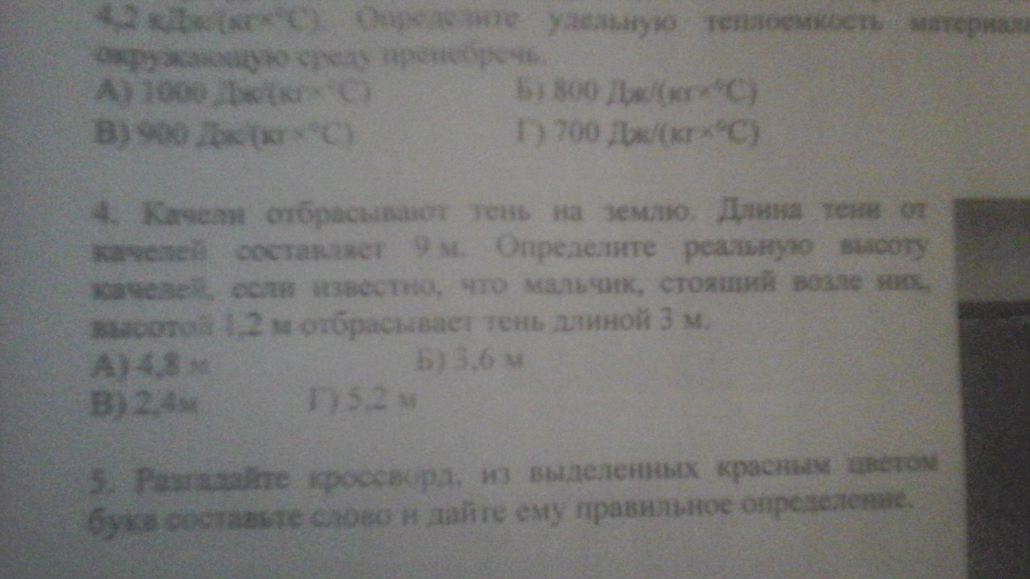 Длина тени от качелей в 3 раза больше, чем тень от мальчика, значит высота качелей тоже в 3 раза больше.
