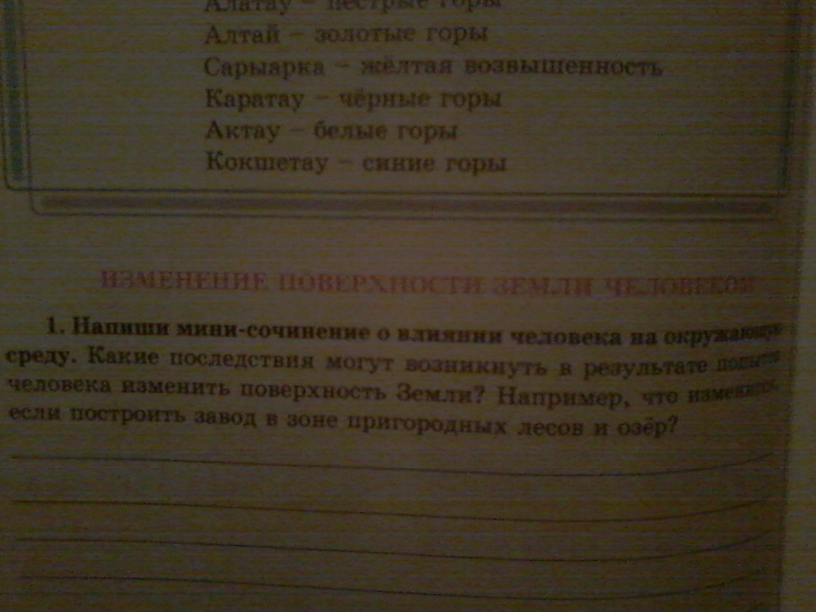 напишите мини-сочинение о влиянии человека на окружающую среду. Какие последствия могут возникнуть в результате попыток человека изменить поверхность Земли? например ,что изменится если построить завод в зоне пригородных лесов и озер?