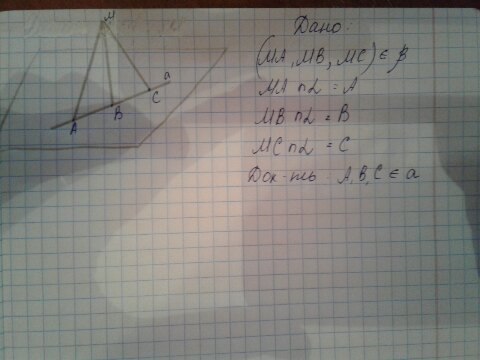 1)точка А принадлежит плоскости альфа и плоскости бета. точка В принадлежит плоскости альфа и бета. точка С принадлежит плоскости альфа и бета.