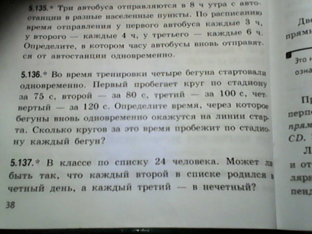 Надо найти НОК(75,80,100,120) = 1200(сек.)- время через которое они вместе окажутся на старте. При этом