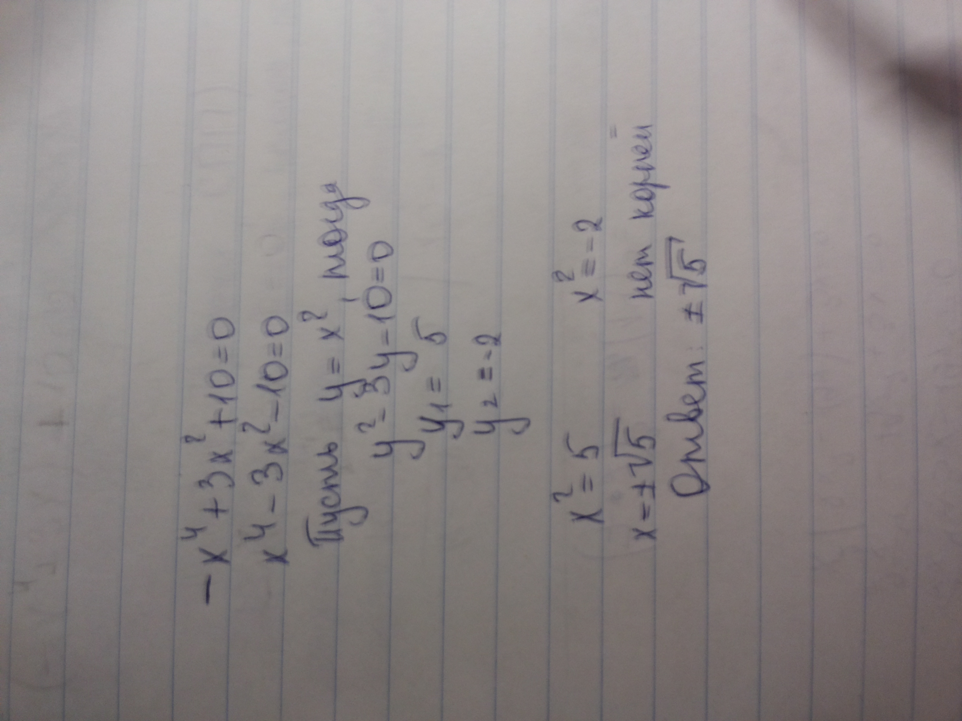 Помогите решить уравнения не понимаю 3 вариант пожалуйста 1 задание биквадратное уравнение -x4+3x в квадрате 2 +10=0 2 задание x2-x-2>0 3 задание методом крамера 5x+3y=12 g 2x-y=7