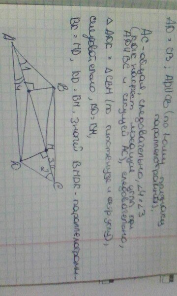 Из вершин A и D параллелограмма ABCD, у которого AB неравно BC и угол А острый, проведены перпендикуляр BK и DM к прямой AC. Докажите что четырёхугольник BMDK - параллелограмм.