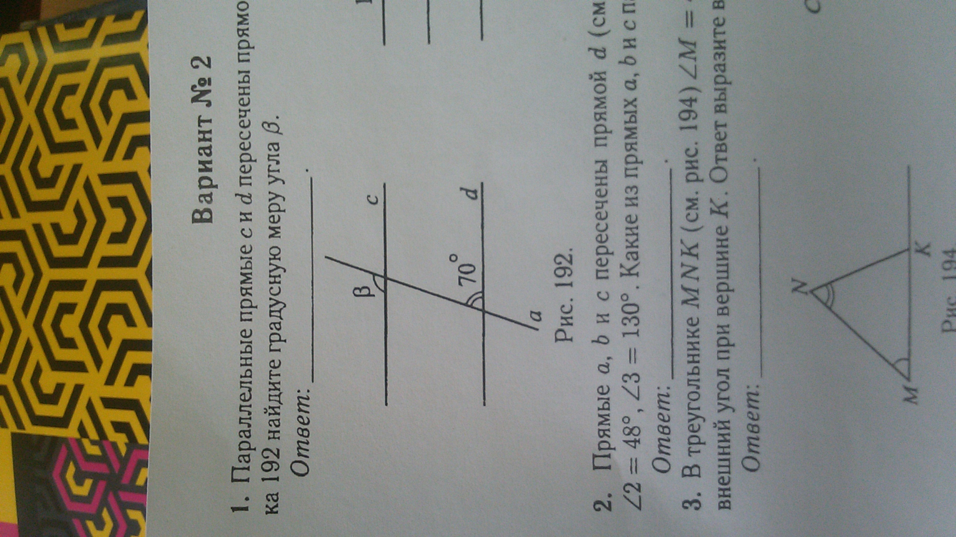 параллельные прямые а и б пересечены прямой а по данным рисунка 192 найдите градусную меру угла в
