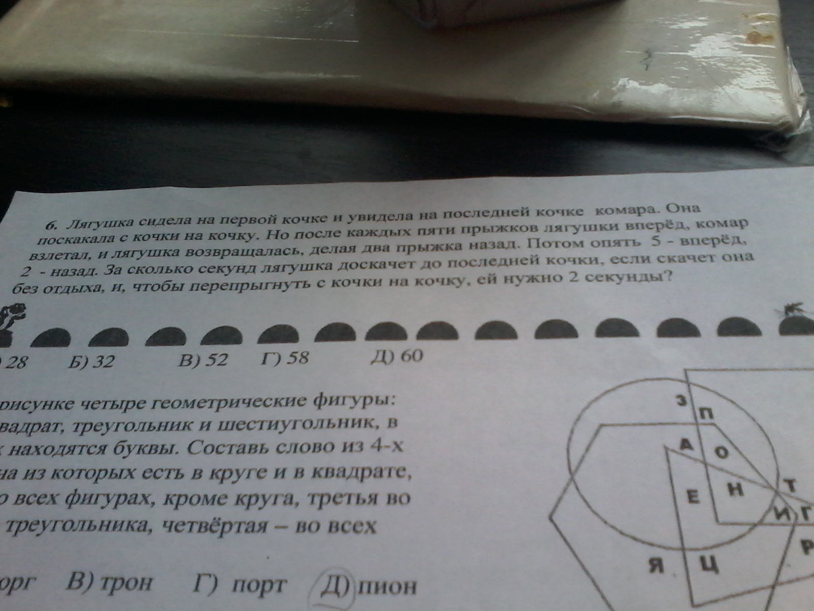Ответ так как лягушка двигалась 10+4+10+4+10+4+10 В (52)
