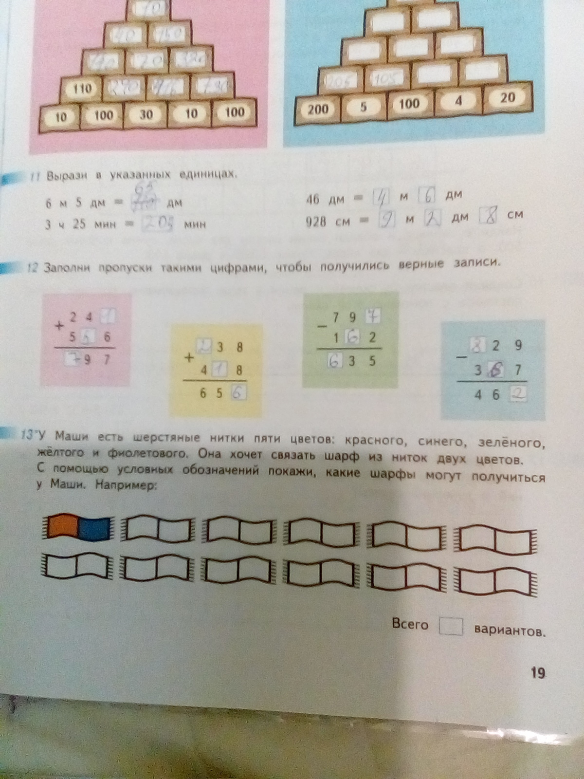 красный и зелёный,красный жёлтый,красный и фиолетовый,зелёный и синий,зелёный и кр