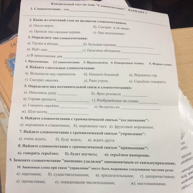 5 согласование-в; примыкание-б, г, д, ж; управление-а, е