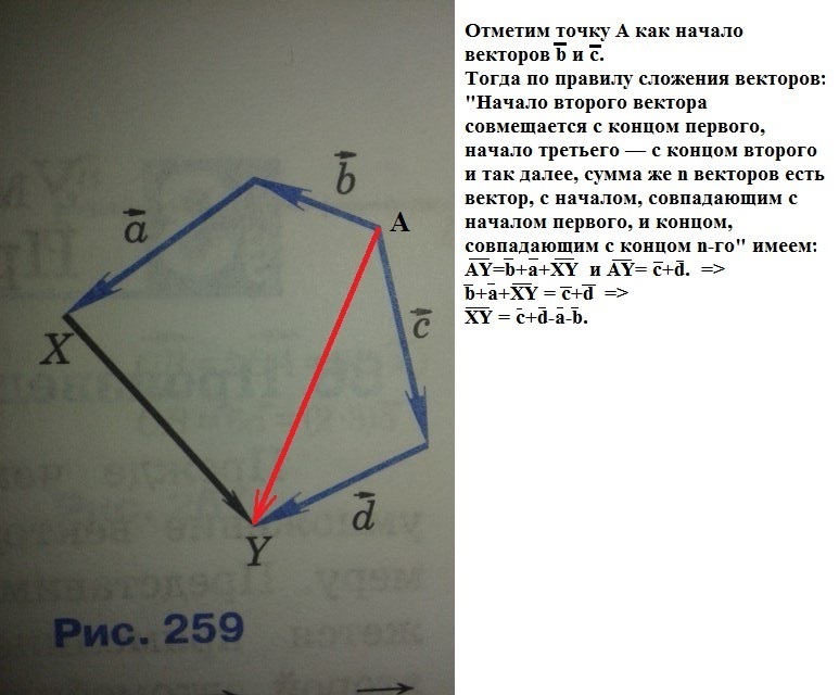 766 На рисунке 259 изображены векторы а, b , с , d , XY. Представьте вектор XY в виде суммы остальных или им противоположных векторов.