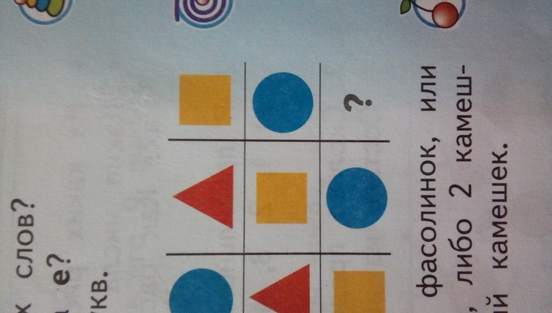 сравни верхнюю и среднюю строчки.Что ты заметил?Сравни первый и второй столбец.Какую фигуру нужно поставить в пустую клетку?
