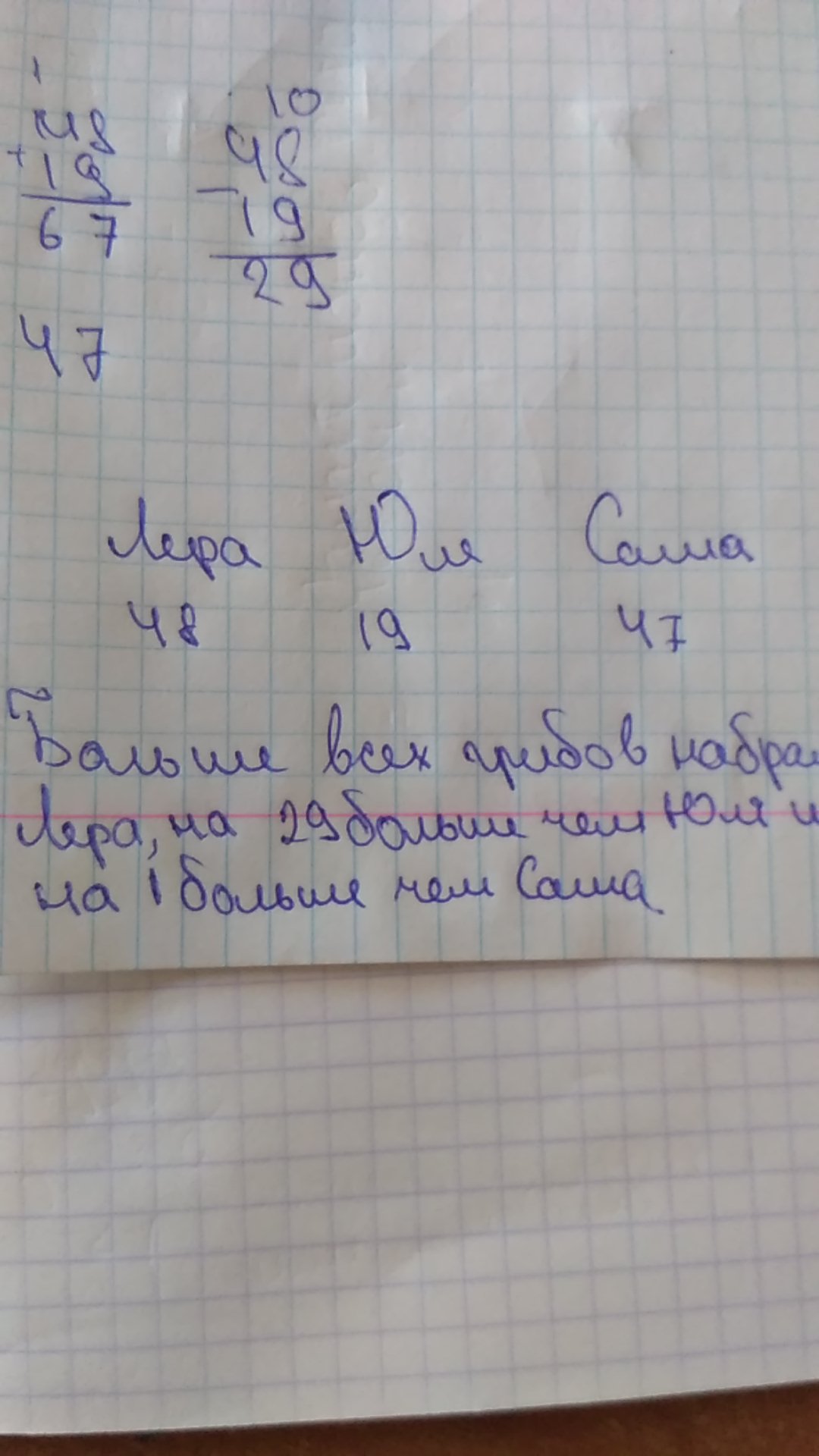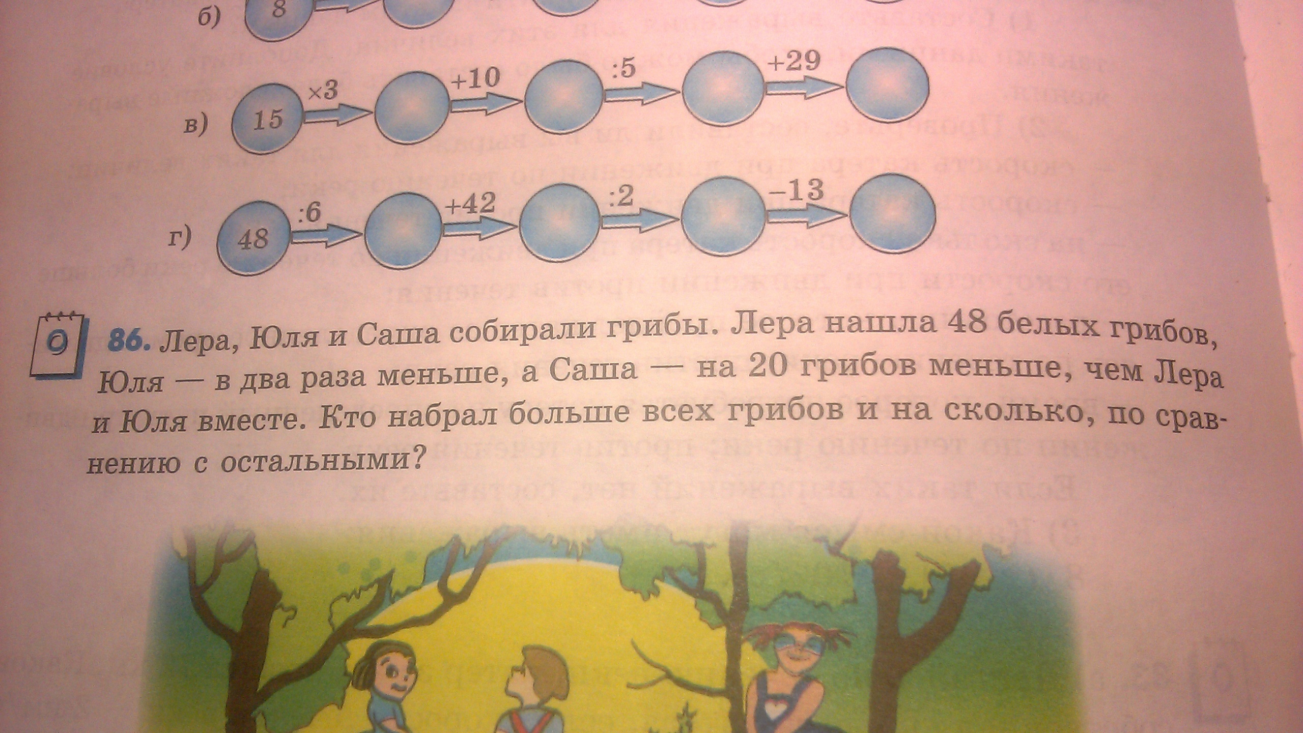 тогда больше всех набрала Саша ,на 4 гриба больше чем у Леры и на 28 больше чем у юли
