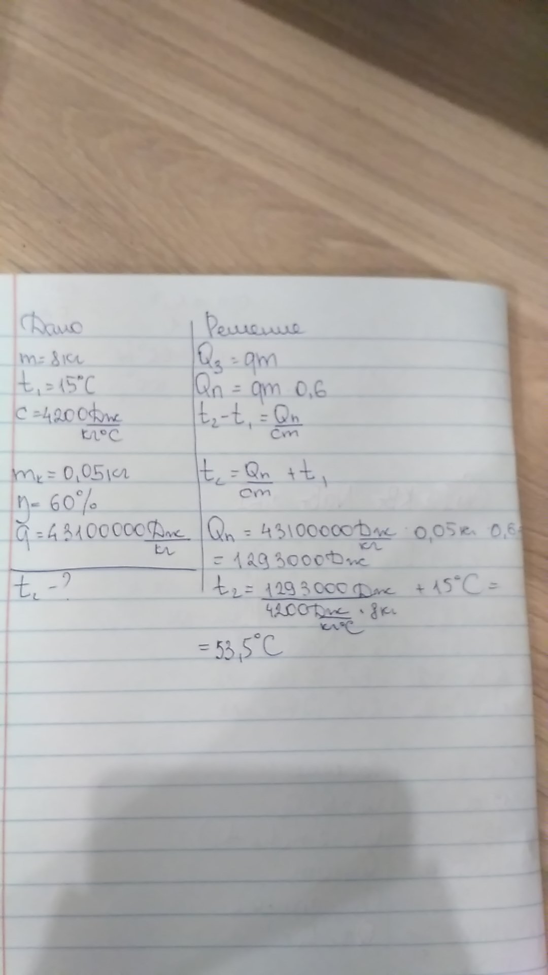 1. До какой температуры нагреется 8 кг воды при 15 градусах, если для её нагревания было сожжено 50 г керосина? КПД нагревателя 60%