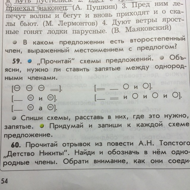 Спиши схемы расставь в них где это нужно запятые придумай и запиши к каждой схеме предложения