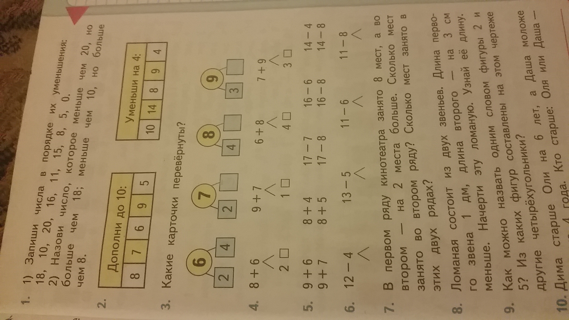 а) в квадратиках цифры 2 и 4