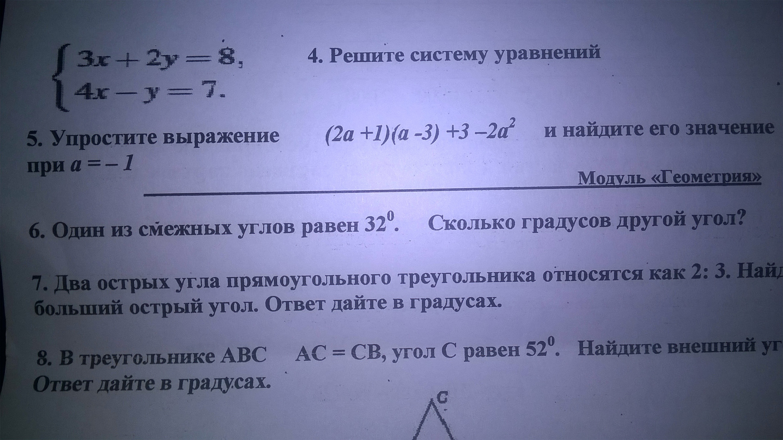 Треугольник прямоугольный, значит один из его углов равен 90 градусов: