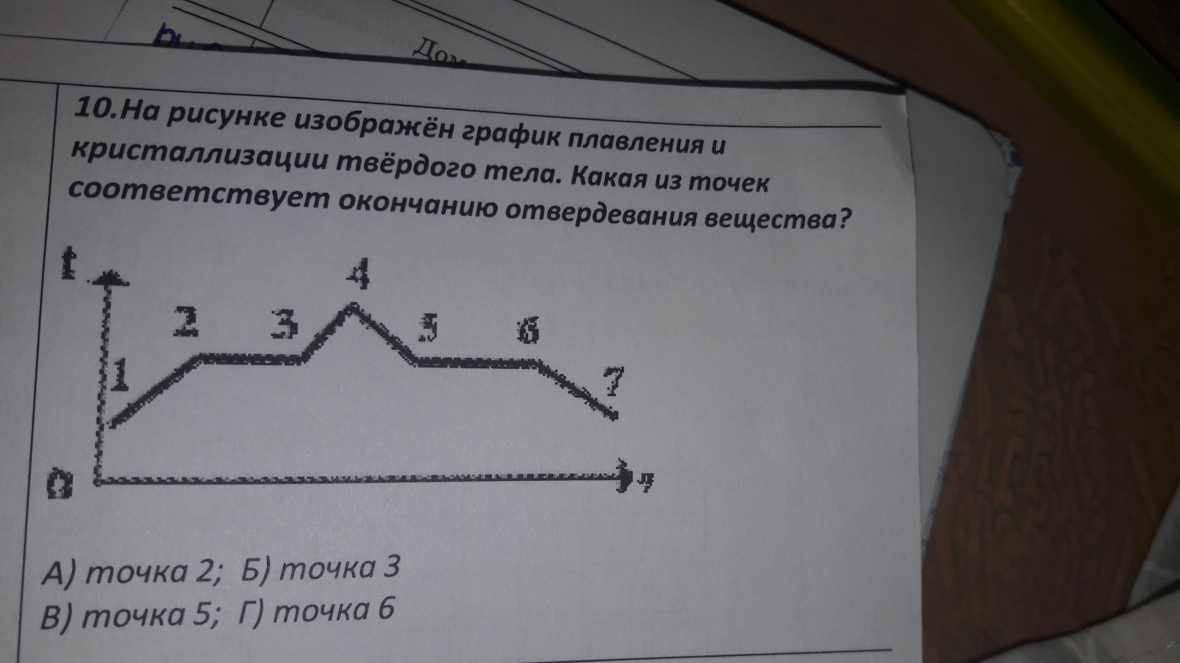 На рисунке изображен график плавления и кристаллизации твёрдо года тела . Какая из точек соответствует окончанию отвердевания вещества?