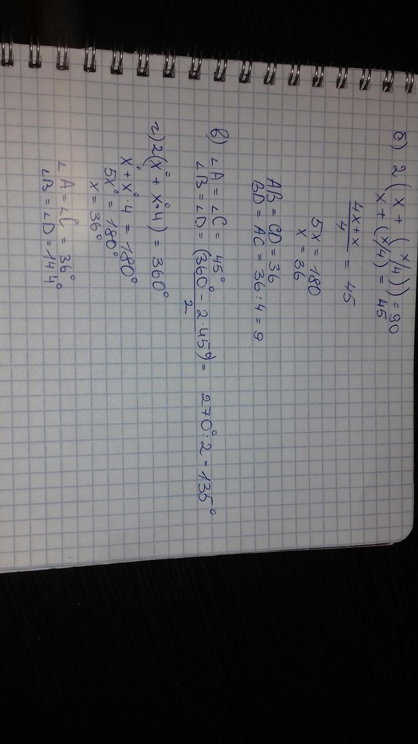 г)один из углов в 4 раза больше другого