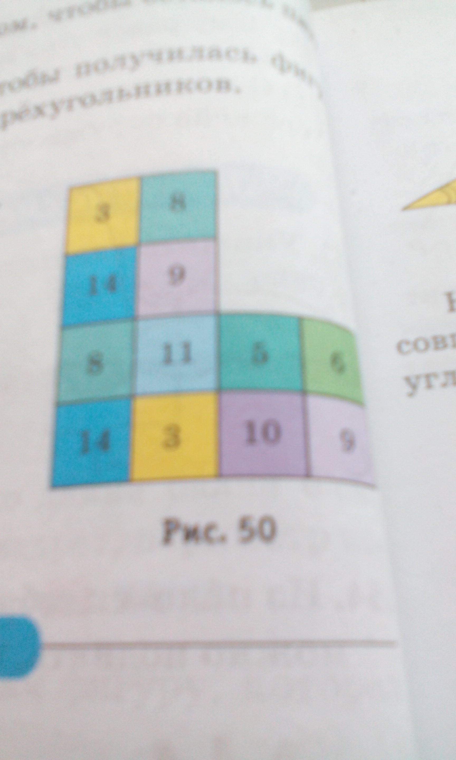 Разделительной фигуру, изображённую на рис.50 на четыре равные части так чтобы сумма чисел в каждой части было одинаково