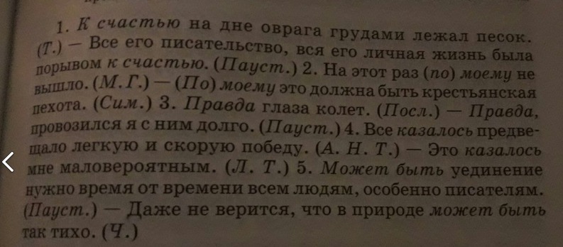 К счастью ( вв.), на дне оврага грудами лежал песок. Все его писательство, вся его личная жизнь была порывом к счастью ( ------). На этот раз по-моему( -.-.-.- ) не вышло. По- моему ( вв.) , это должна быть крестьянская пехота. Правда ( - ) глаза колет. Правда ( вв.) , провозился я с ним долго. Все, казалось ( вв.), предвещало легкую и скорую победу. Это казалось ( = ) мне маловероятным. Может быть ( вв.), уединение нужно время от времени людям , особенно писателям. Даже не верится, что в природе может быть (= ) так тихо.
