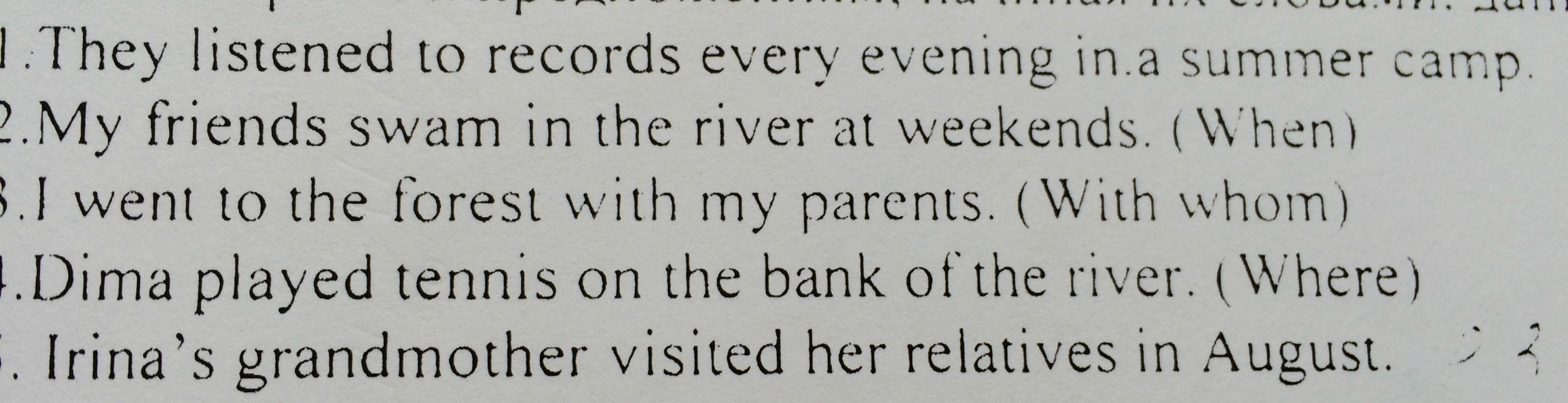 2) My friends didn't swim in the river at weekends.