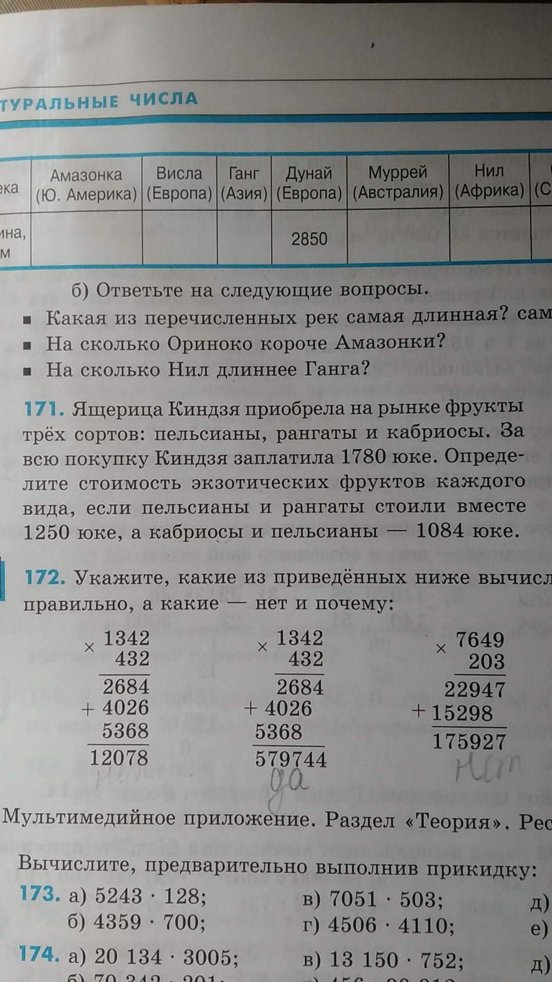 2) 1780 - 1084 = 696 (юке) - стоимость рангатов [Из стоимости всех фруктов мы вычли сумму кабриосов и пельсианов].