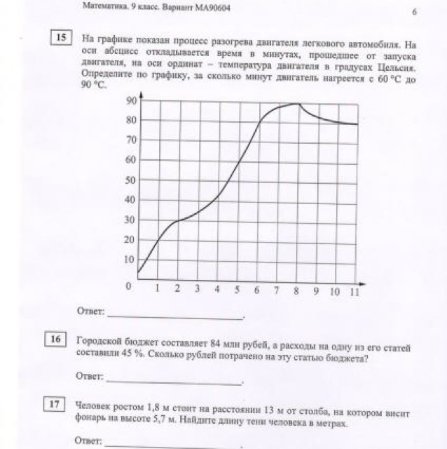 На графике показан процесс разогрева двигателя легкового автомобиля. На оси абсцисс откладывается время в минутах.......