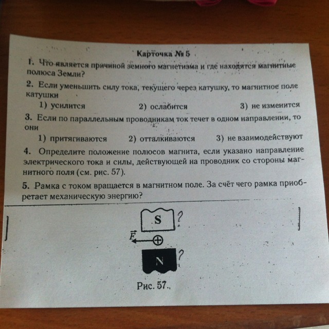 3. ток идет от нас , сила влево . Значит левую руки нужно располагать так , чтобы 4 пальца по току , а большой по силе , тогда в ладонь должны входить вектора В , а они идут из северного полюса к южному . Значит на чертеже нужно поменять местами буквы N и S